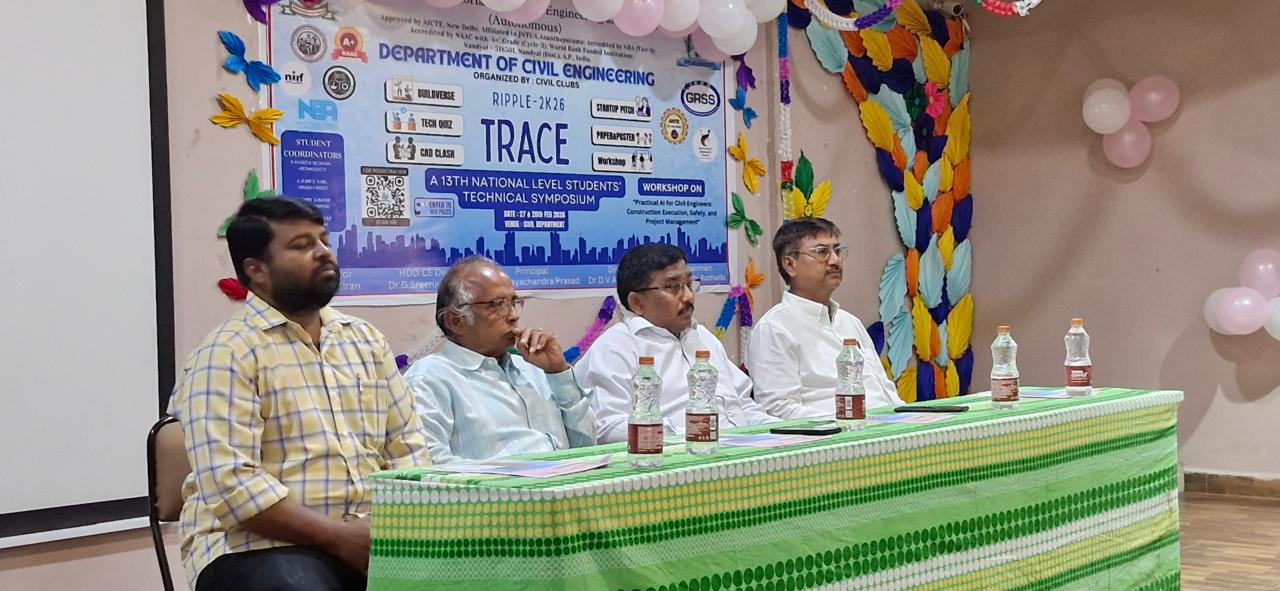• The Department of Civil Engineering is organizing a 13th National Level Students Technical Symposium "TRACE (Ripple-2k26)" from 27-28 Feb, 2026.. For further details Click here.. Date: 13.02.2026