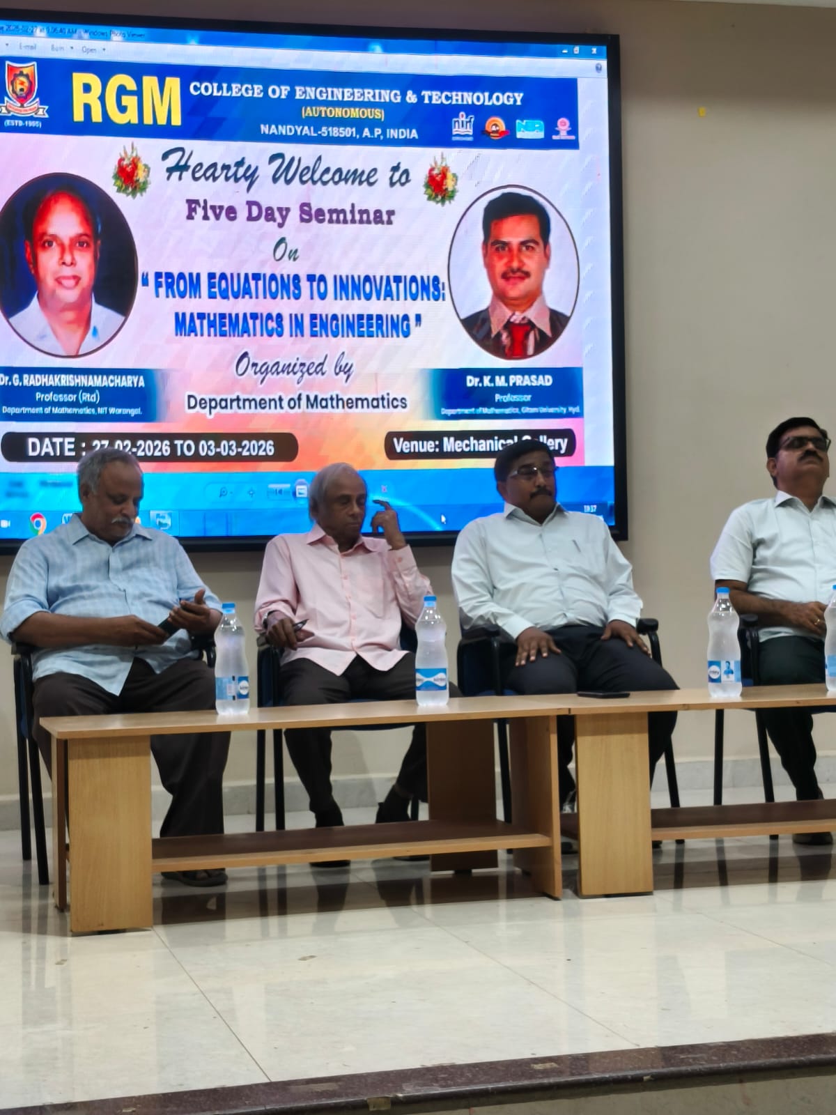 • The Department of Mathematics is organizing a Five-Day Seminar on “From Equations to Innovations: Mathematics in Engineering” from 27th February 2026 to 3rd March 2026. For further details Click here.. Date: 17.02.2026