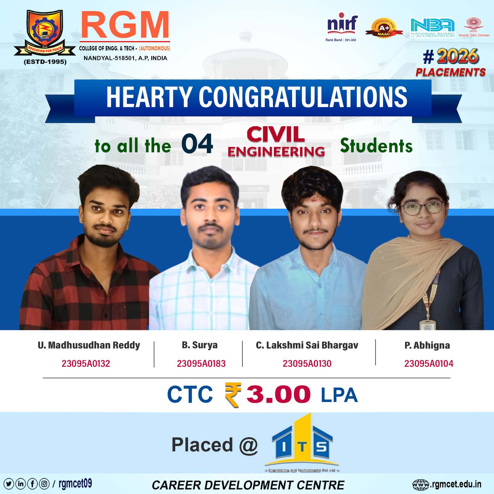 • The Department of Civil Engineering is organizing a One-Day Workshop on “STAAD Pro” for ESC Government Polytechnic students at RGMCET on 20th September 2025.. For further details Click here.. Date: 18.09.2025
