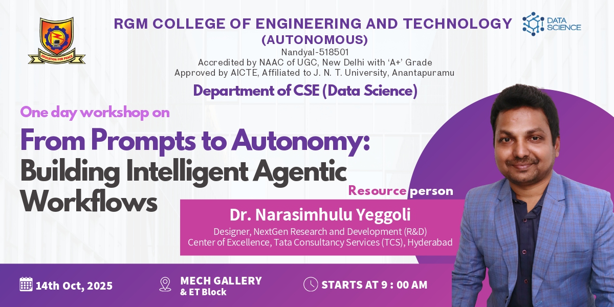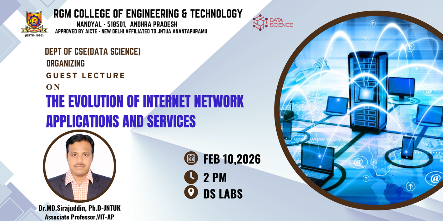 Given the mounting importance of the data science paradigm, RGMCET has decided to start a new 4 years bachelor program on Computer Science and Engineering with a specialization Data Science. The curriculum of the this program focuses on exposing to the students with the essentials of applied statistics, applied mathematics, and computer science required in the context of data science and its applications with strong emphasis on having hands-on experience with the help of practicum, labs and experience of dealing with real-world problems.