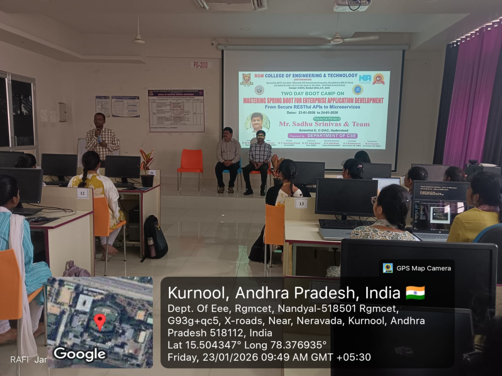 Dept. of CSE organized Two-Day Boot Camp on “Mastering Spring Boot for Enterprise Application Development”, to be conducted by Mr. Sadhu Sreenivas, Scientist, C-DAC, Hyderabad.