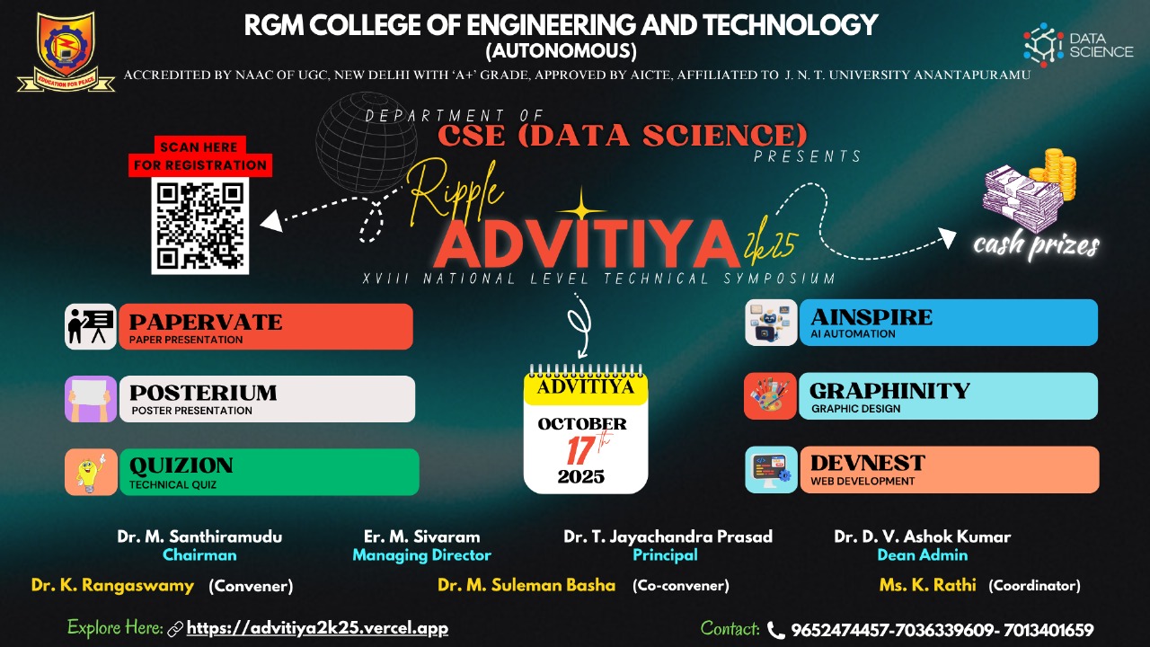 - Provide an environment for leading edge research that has a strong and rapid impact on the economy and that reestablishes RGMCET as a world leader in technological advancement.