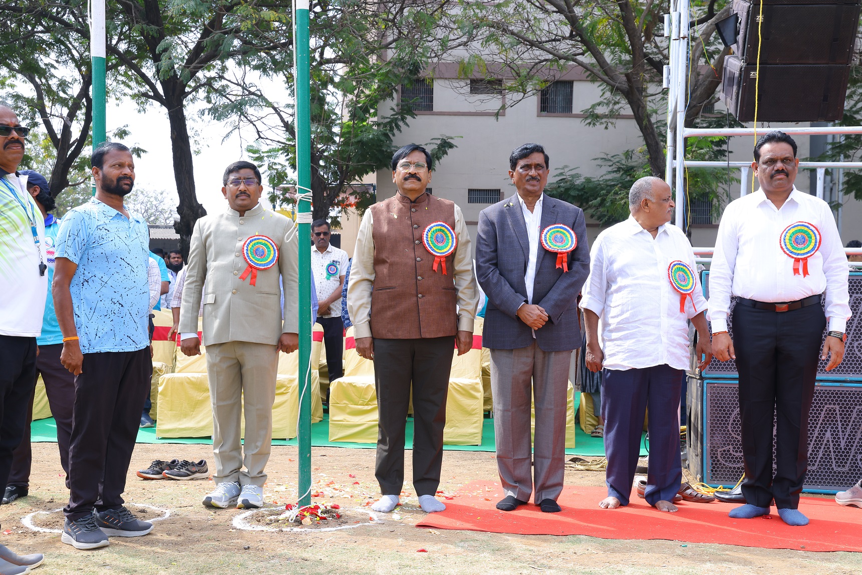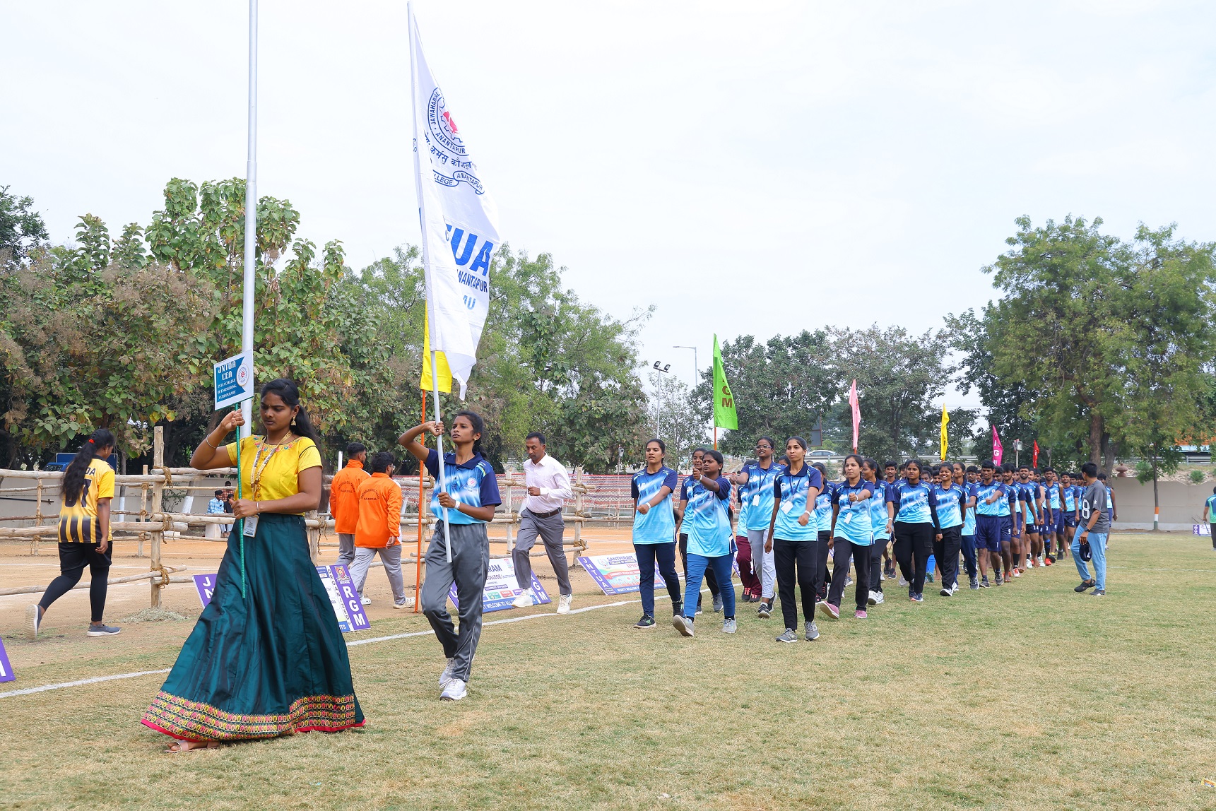 The Physical Education Department has sufficient supporting staff to help the students and faculty members in using fitness, sports and games facilities. The College has a big play ground laid down the following fields.